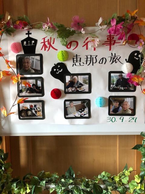 行楽シーズン到来。みんなでお出かけしました。お出かけできなかった方々も行楽弁当やお土産を楽しみました。